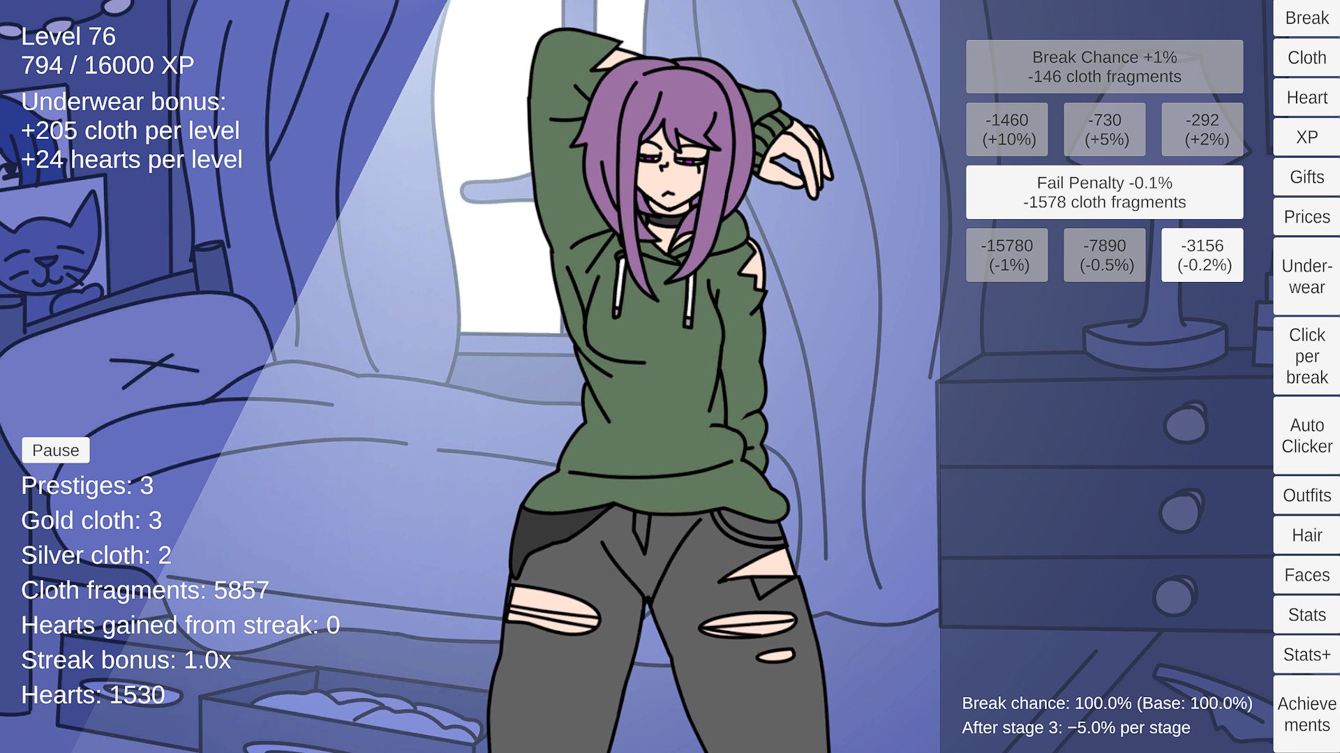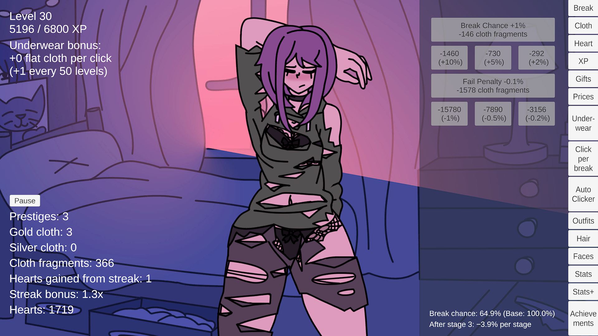 • XP & Leveling – Gain XP from clicks with scaling requirements and level caps • Underwear Bonuses – Each set gives different effects that change how you play
